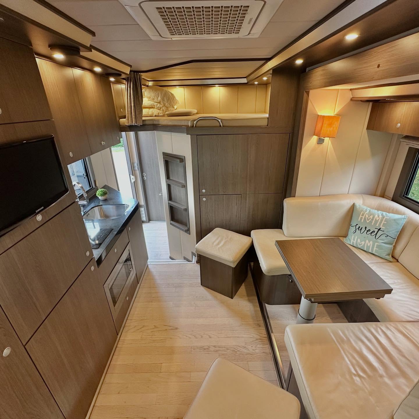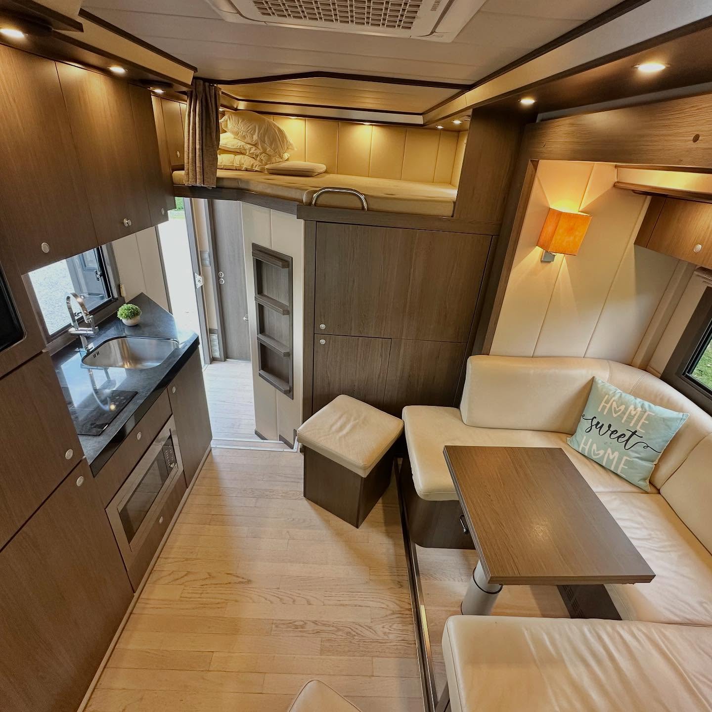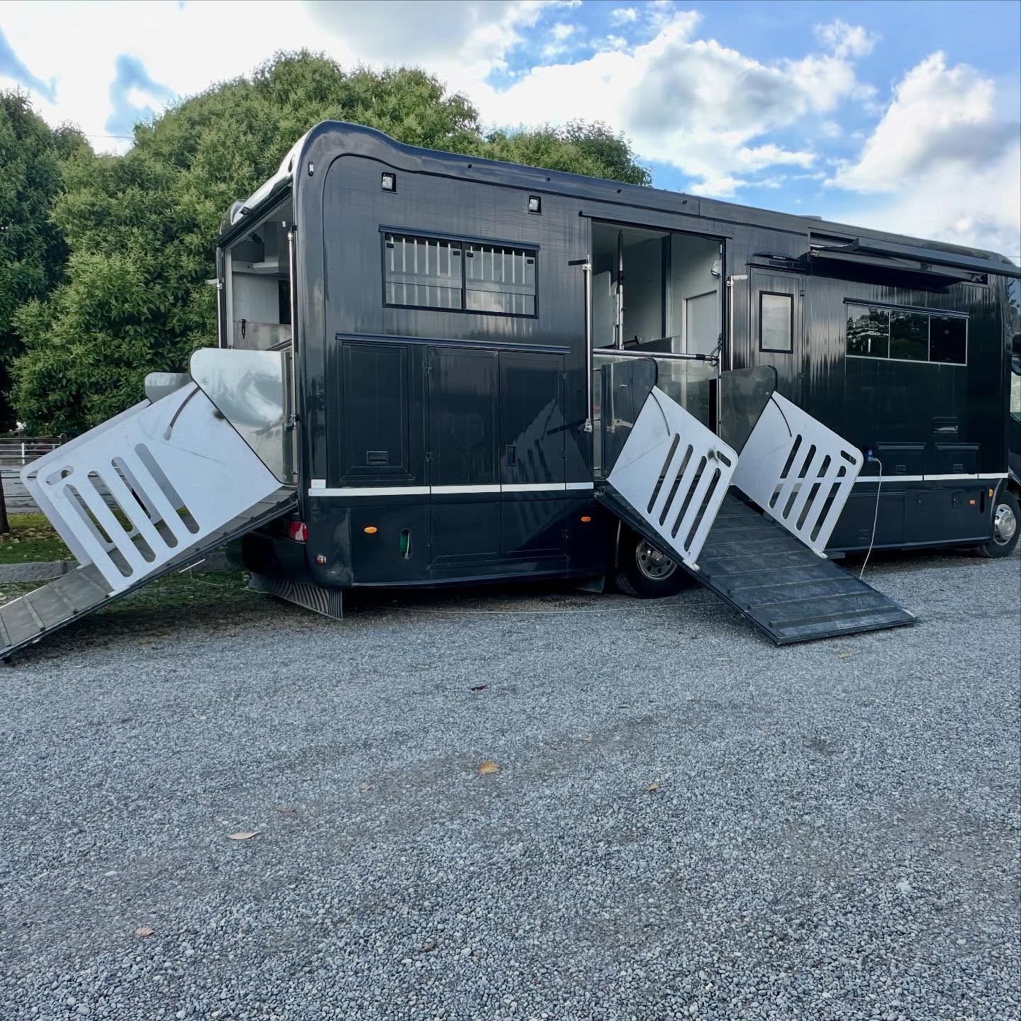 Volvo FL 16.28 del 2011 con 136.000 km, motorhome, cambio automatico, CarPlay, cabina ribaltabile, sedute in pelle, gancio traino, full pneumatico, etc…Allestimento STX per trasportare n.5 cavalli. Dotato di pedana laterale e posteriore manuale, ventole, luci a led diurne e notturne, video sorveglianza interna e per la retromarcia, sellerie esterne, allarme etc..Living con popout full optional con n.6 posti letto. Bagno con box doccia separato, tv con antenna satellitare, aria condizionata, webasto, serbatoi acque automatici, etc..Lunghezza totale 10,50 m.Se anche tu cerchi una soluzione similare, contattaci: (+39) 333 3327196 info@fclgroup.it www.fclgroup.it