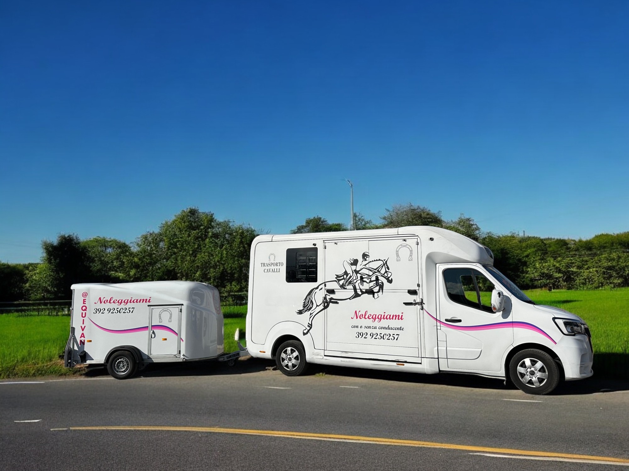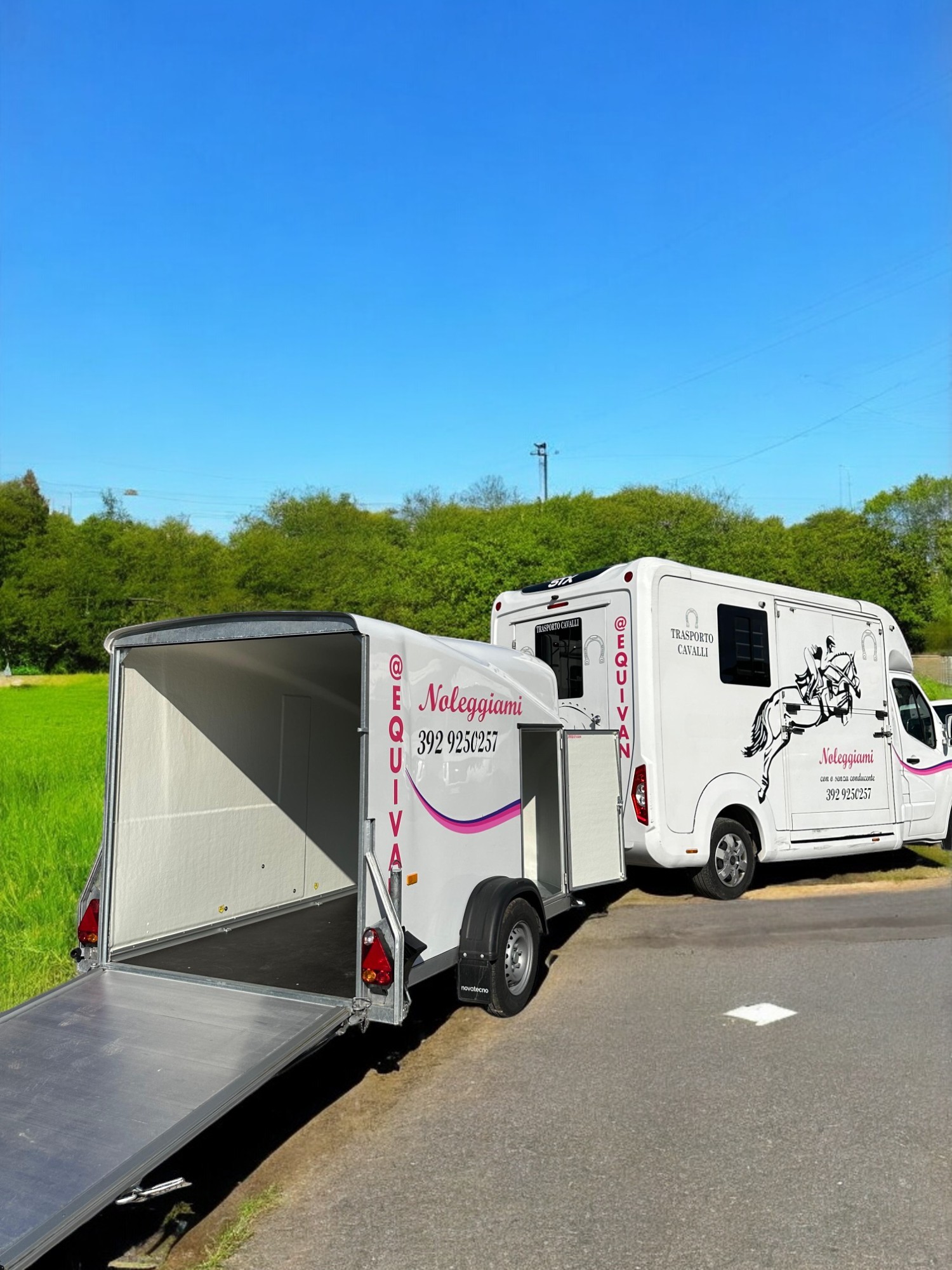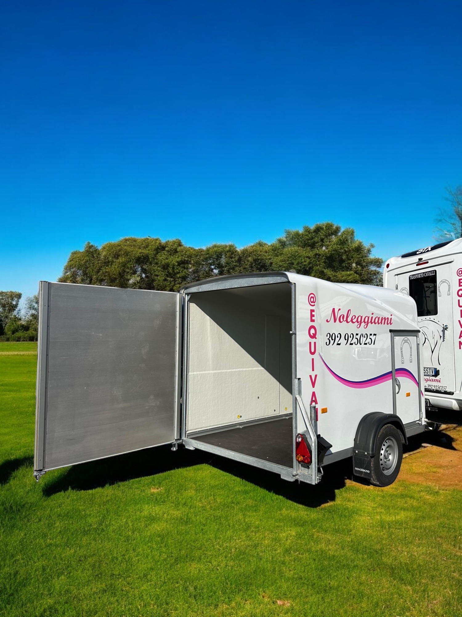 Porta attrezzature per cavalli, valigie, fieno, cassoni e disponibile con supporto porta moto.